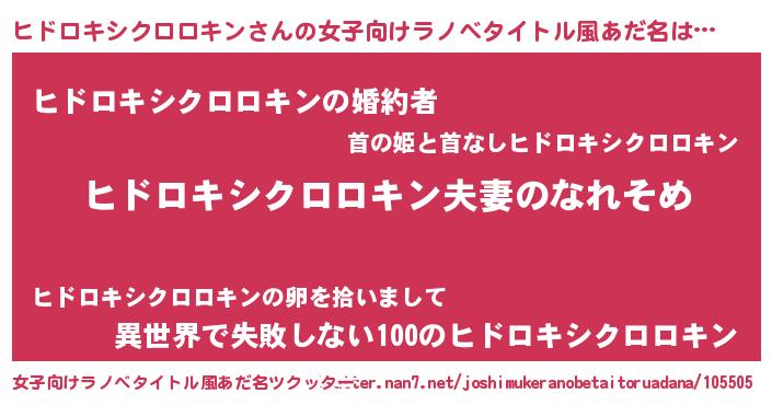 | 男性向けラノベタイトル風あだ名 | 『おまえをオタクにしてやるから、俺をヒドロキシクロロキンにしてくれ! 』 |