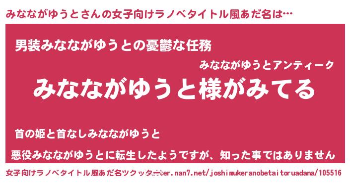 | 男性向けラノベタイトル風あだ名 | 『みなながゆうとの嫁は女の子じゃないと思った?』 |
