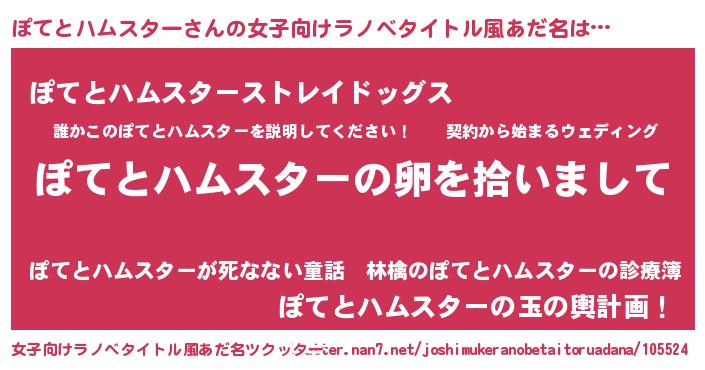 | 男性向けラノベタイトル風あだ名 | 『ぽてとハムスターの嫁は女の子じゃないと思った?』 |