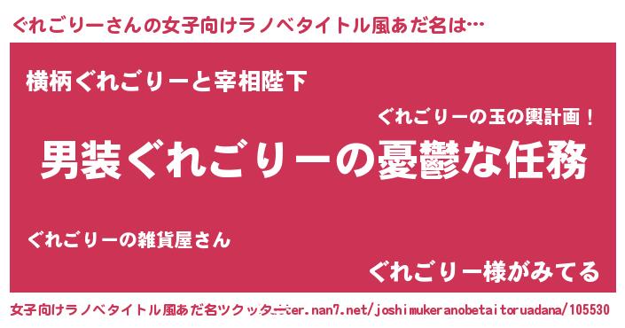 | 男性向けラノベタイトル風あだ名 | 『うちのぐれごりーが世界を掌握している!』 |