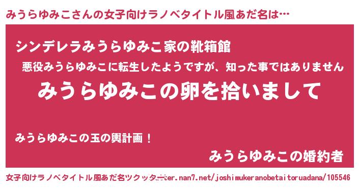 | 男性向けラノベタイトル風あだ名 | 『みうらゆみこの嫁は女の子じゃないと思った?』 |