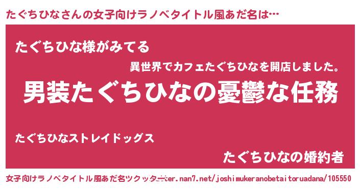 | 男性向けラノベタイトル風あだ名 | 『うちのたぐちひなが世界を掌握している!』 |