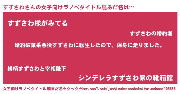 | 男性向けラノベタイトル風あだ名 | 『スズサワスレイヤー』 |