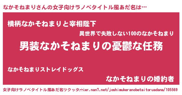 | 男性向けラノベタイトル風あだ名 | 『うちのなかそねまりが世界を掌握している!』 |