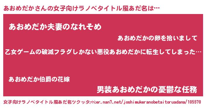| 男性向けラノベタイトル風あだ名 | 『この素晴らしい世界にあおめだかを!』 |