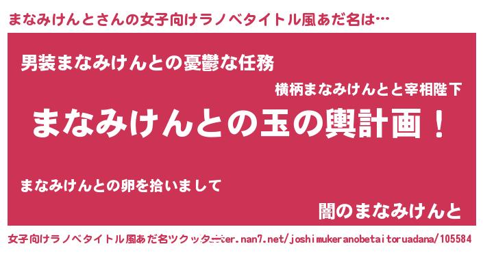 | 胡散臭い通販商品みたいなあだ名 | 『テレビで話題のアガリクス…その名も「まなみけんと」』 |