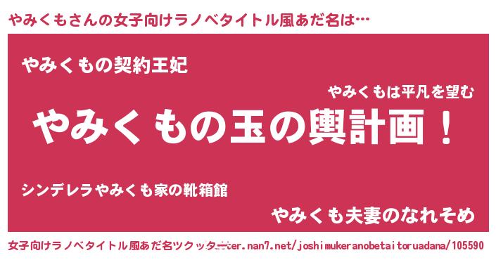 | 男性向けラノベタイトル風あだ名 | 『やみくも~年齢イコール彼女いない歴の魔法使い~』 |