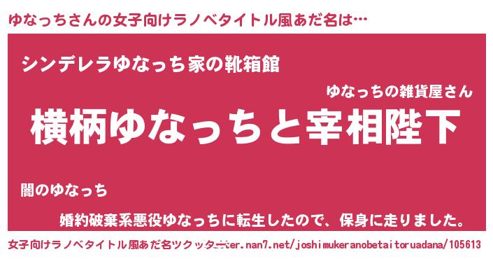| 意味不明あだ名 | 『なめこ科ゆなっち属』『自称ゆなっち』 |