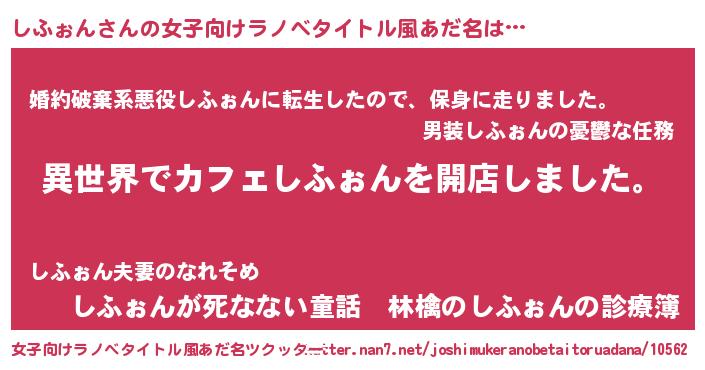 | 男性向けラノベタイトル風あだ名 | 『誰もが恐れるあのしふぉんが、ぼくの専属メイドになるようです。』 |