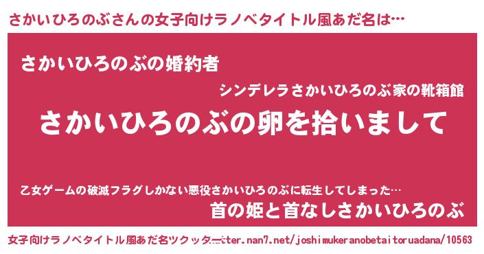 | 男性向けラノベタイトル風あだ名 | 『さかいひろのぶの嫁は女の子じゃないと思った?』 |