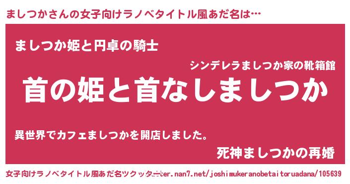 | ファンタジー風あだ名 | 『マシフェル』『クインマット』 |