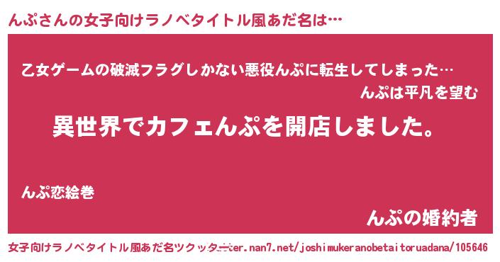 | 男性向けラノベタイトル風あだ名 | 『誰もが恐れるあのんぷが、ぼくの専属メイドになるようです。』 |