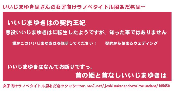| 男性向けラノベタイトル風あだ名 | 『イイジマユキハアートオンライン』 |