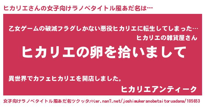 | 男性向けラノベタイトル風あだ名 | 『ダンジョンにヒカリエを求めるのは間違っているだろうか』 |