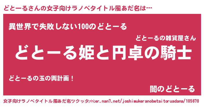 | 胡散臭い通販商品みたいなあだ名 | 『モテモテ間違いなしブレスレット…その名も「どとーる」』 |