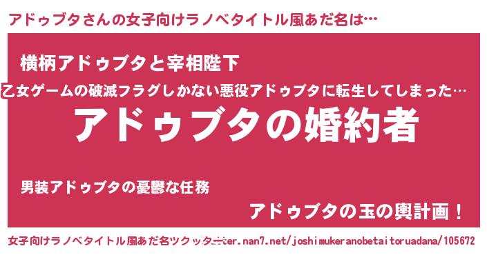 | 胡散臭い通販商品みたいなあだ名 | 『運命の人と巡り会える高級そうな壺…その名も「アドゥブタ」』 |