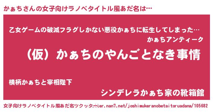 | 意味不明あだ名 | 『ペロリンかぁち』『自称かぁち』 |
