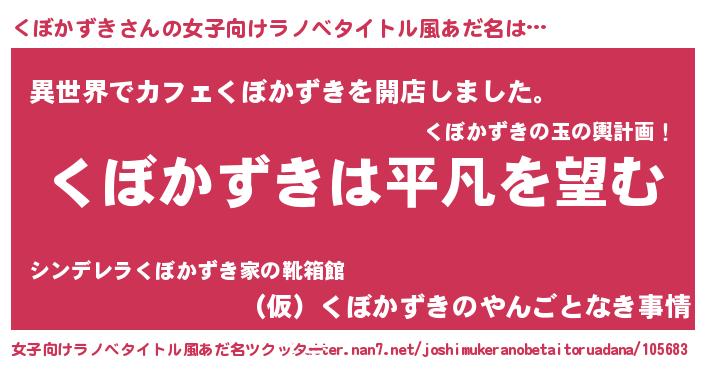 | 男性向けラノベタイトル風あだ名 | 『ダンジョンにくぼかずきを求めるのは間違っているだろうか』 |