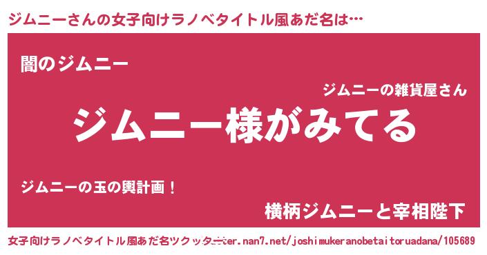 | 男性向けラノベタイトル風あだ名 | 『ジムニーの嫁は女の子じゃないと思った?』 |