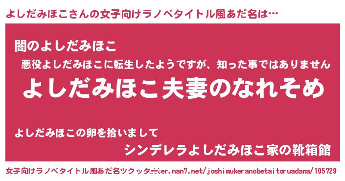 | 胡散臭い通販商品みたいなあだ名 | 『100人中100人が認めたイリジウム磁石…その名も「よしだみほこ」』 |