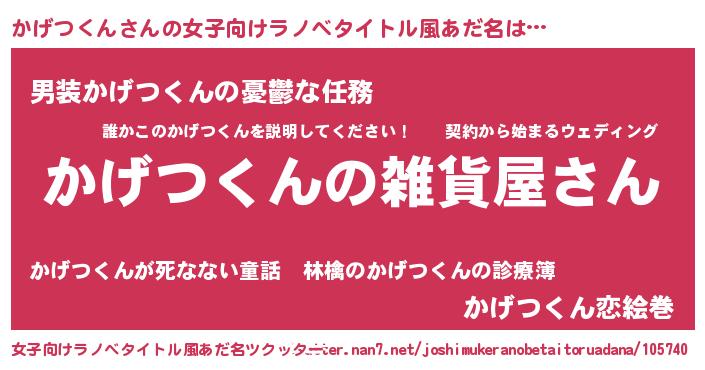 | 男性向けラノベタイトル風あだ名 | 『やはりかげつくんの青春ラブコメはまちがっている 』 |