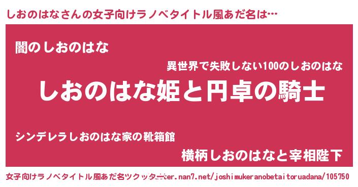 | 男性向けラノベタイトル風あだ名 | 『シオノハナアートオンライン』 |