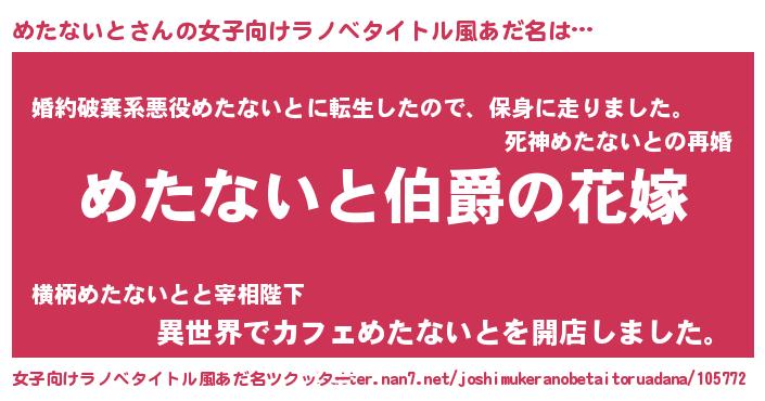 | 意味不明あだ名 | 『めたないとフォーエバー』 |