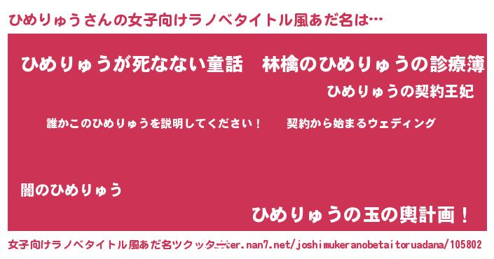 | 胡散臭い通販商品みたいなあだ名 | 『億万長者になれるブレスレット…その名も「ひめりゅう」』 |