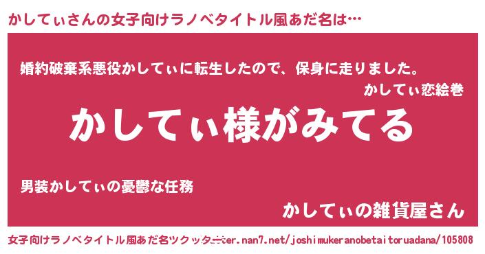 | 男性向けラノベタイトル風あだ名 | 『かしてぃの嫁は女の子じゃないと思った?』 |