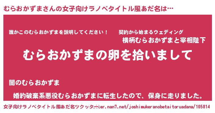 | 男性向けラノベタイトル風あだ名 | 『むらおかずまの嫁は女の子じゃないと思った?』 |