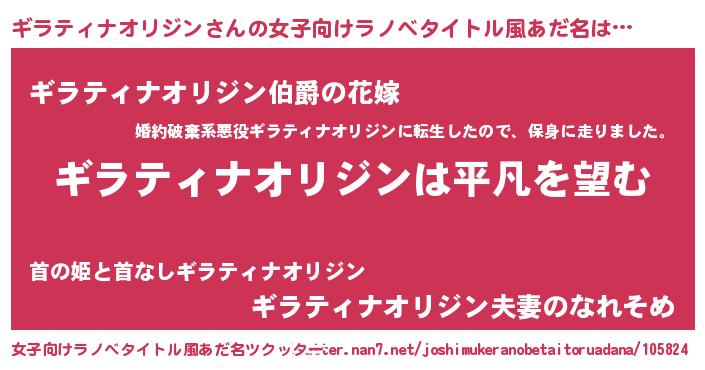 ギラティナオリジンさんの女子向けラノベタイトル風あだ名
