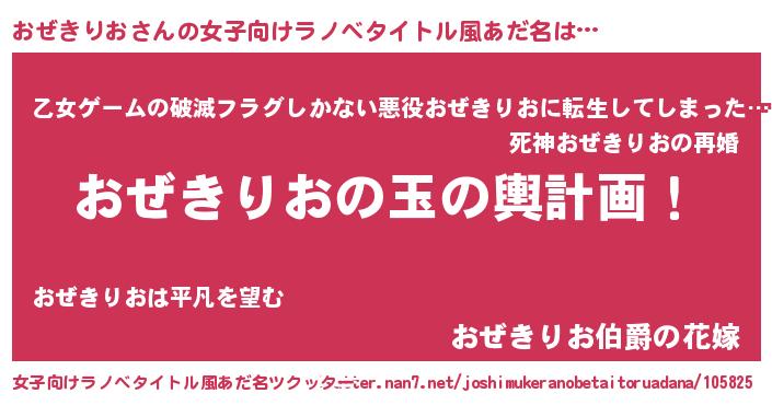 | ヒーロー風カッコイイあだ名 | 『仮面オゼダー』『慈愛の使者おぜきりお』 |