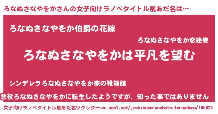 | 男性向けラノベタイトル風あだ名 | 『ダンジョンにろなぬさなやをかを求めるのは間違っているだろうか』 |