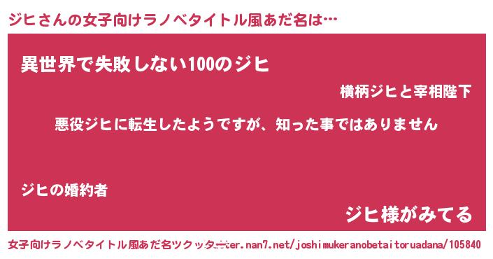 | 男性向けラノベタイトル風あだ名 | 『この素晴らしい世界にジヒを!』 |
