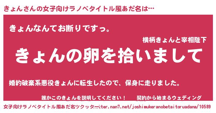 | 男性向けラノベタイトル風あだ名 | 『ダンジョンにきょんを求めるのは間違っているだろうか』 |