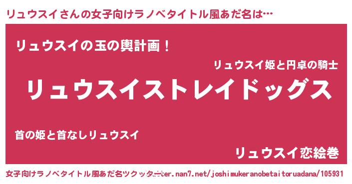 | 男性向けラノベタイトル風あだ名 | 『Re:リュウスイから始める異世界生活』 |