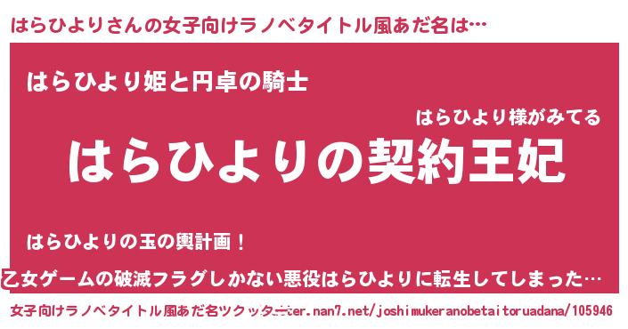 | 男性向けラノベタイトル風あだ名 | 『はらひよりという概念が存在しない退屈な世界 』 |