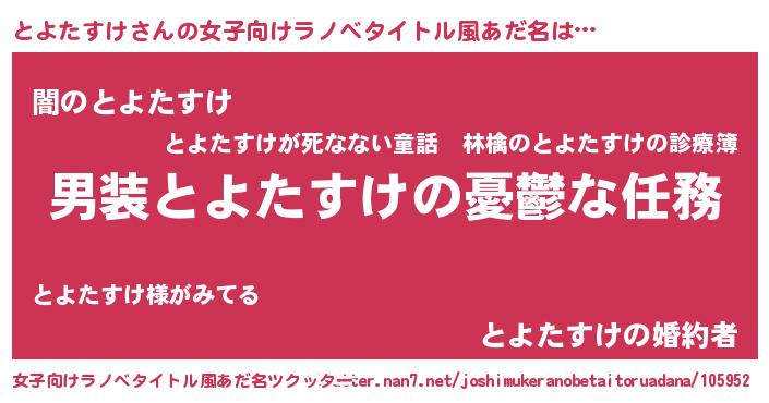 | 胡散臭い通販商品みたいなあだ名 | 『テレビで話題の高麗人参…その名も「とよたすけ」』 |
