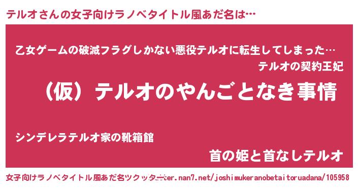 | 男性向けラノベタイトル風あだ名 | 『テルオの憂鬱』『はたらくテルオさま!』 |