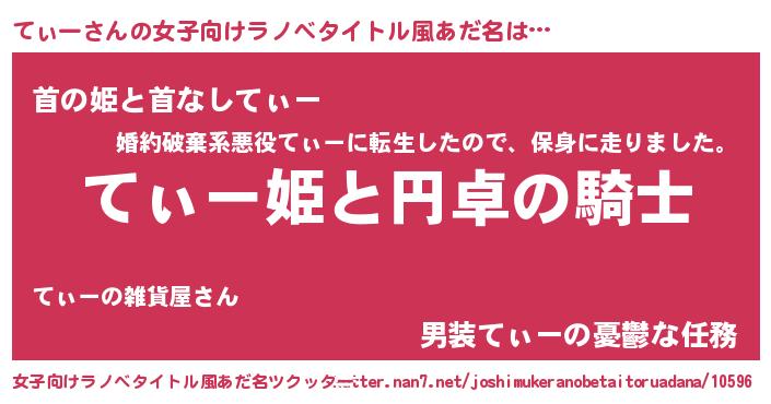 | 胡散臭い通販商品みたいなあだ名 | 『モテモテ間違いなし霊験あらたかなお札…その名も「てぃー」』 |