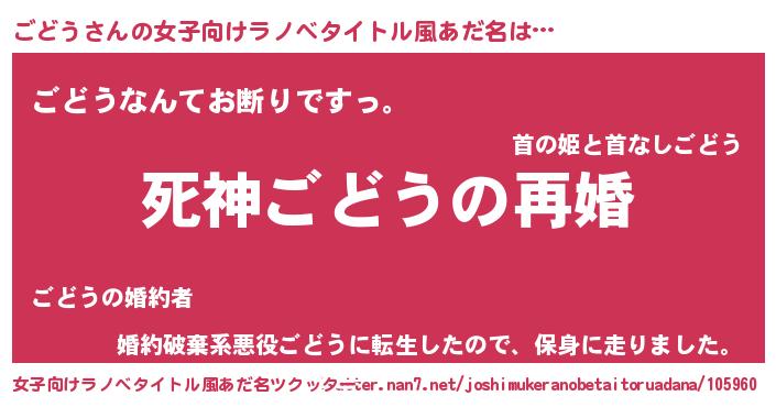 | 男性向けラノベタイトル風あだ名 | 『ノーゲーム・ノーゴドウ』 |