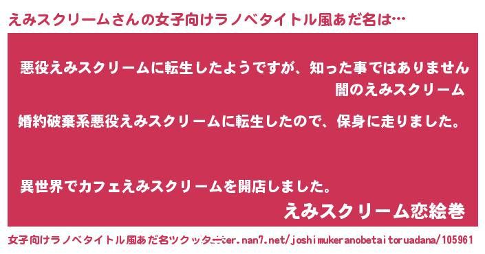 | 男性向けラノベタイトル風あだ名 | 『エミスクリームスレイヤー』 |