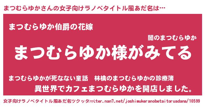 | ポケモン風あだ名 | 『ヒマツムラユカ』『マツムダネ』 |