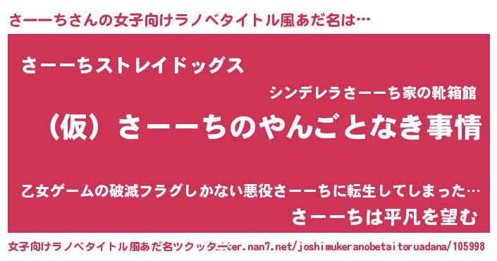 | 男性向けラノベタイトル風あだ名 | 『さーーちの憂鬱』『緋弾のサーーチ』 |
