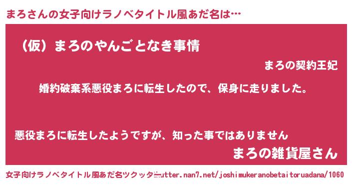 | 男性向けラノベタイトル風あだ名 | 『転生したらまろだった件』『まろの憂鬱』 |