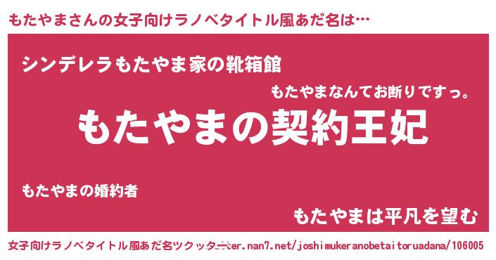 | 男性向けラノベタイトル風あだ名 | 『誰もが恐れるあのもたやまが、ぼくの専属メイドになるようです。』 |