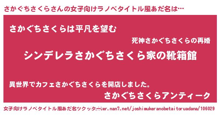 | 男性向けラノベタイトル風あだ名 | 『緋弾のサカグチサクラ』 |