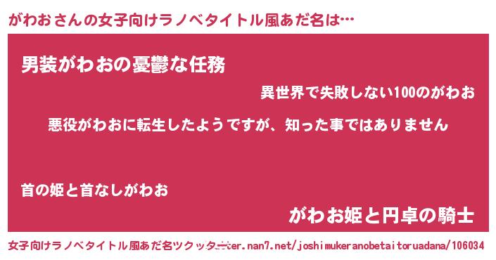 | 胡散臭い通販商品みたいなあだ名 | 『あなたにだけ特別に提供する限定10本のレアな日本酒…その名も「がわお」』 |