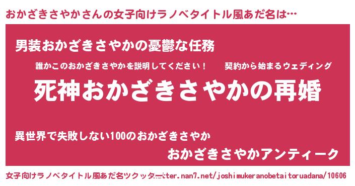 | 男性向けラノベタイトル風あだ名 | 『ノーゲーム・ノーオカザキサヤカ』 |