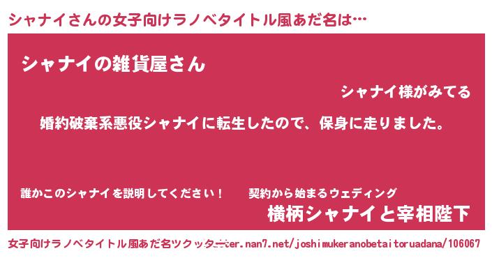 | 男性向けラノベタイトル風あだ名 | 『シャナイスレイヤー』 |